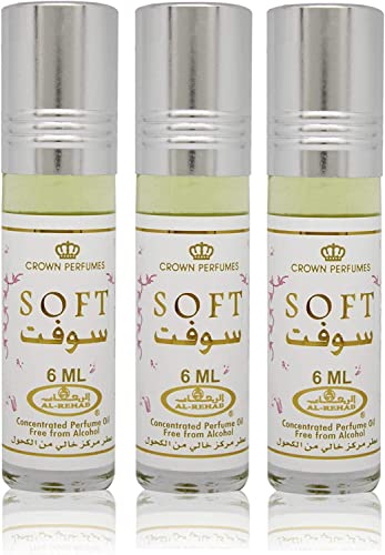 Set of 3 6ml Soft Perfume Oil by Al Rehab | Set of 3 Bottles Oriental Concentrated Perfume Oil | Caramel, Citrus, Vanilla, Sweet