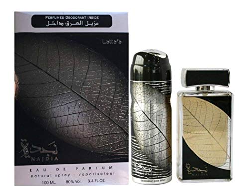 Perfume Najdia LATTAFA Eau de Parfum 100 ml + Deodorant 25 ml + 1 FREE by Bakhur Al-Zahra